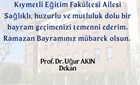 Dekanımız Prof. Dr. Uğur AKIN’ın Ramazan Bayramı Tebrik Mesajı