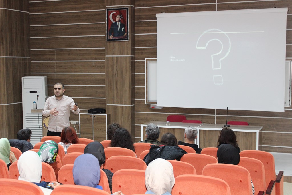 Within the scope of Teachers' Day activities in our faculty, a seminar titled ’Mental Flexibility: How to Get Out of the Grip of Thoughts’ seminar was organised. Our academicians and students attended the seminar held in the Şehit Hüseyin Kısa Conference Hall of our faculty. In his presentation, Asst. Prof. Dr. Burak KÖKSAL gave detailed information on cognitive dissociation, stress management and emotional resilience, noticing how thoughts and emotions affect us and observing them from an objective point of view. The seminar also touched upon how to integrate these techniques into our daily lives through practical exercises. Afterwards, the participants had the opportunity to ask questions about the subject. The event ended with the presentation of a certificate of appreciation.