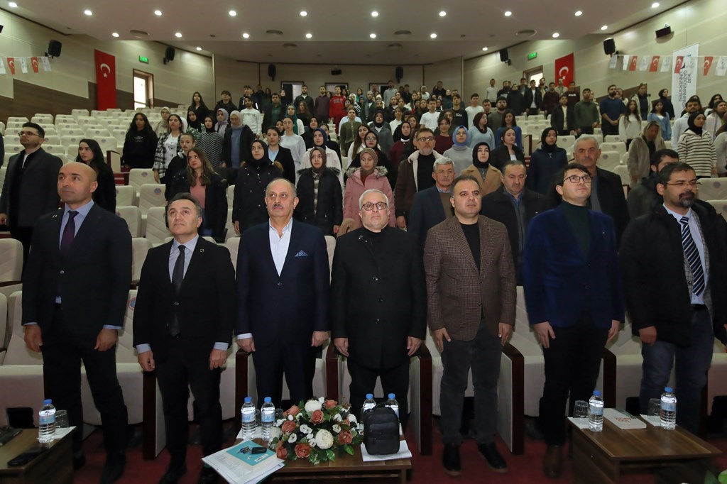 Our Rector, Prof. Dr. Fatih Yılmaz, emphasized the importance and richness of our language in his speech. He stated that Prof. Dr. Ertuğrul Yaman has very important and numerous works about the richness and sources of our language and expressed his pleasure to host the professor at our University. He ended his speech by expressing his thanks to Prof. Dr. Ertuğrul Yaman for his lectures.