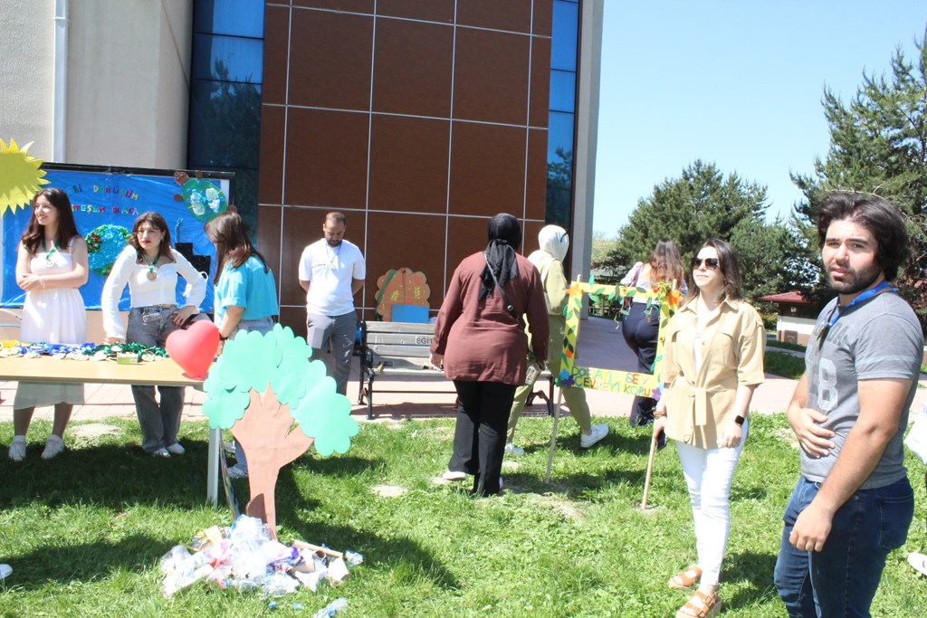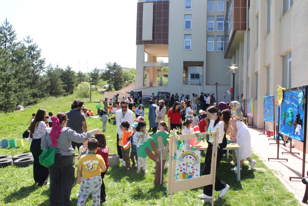 Eğitim Fakültesi yan bahçesinde gerçekleştirilen Çevre şenliğinde öğrenciler, erken çocukluk dönemine uygun olarak tasarladıkları özgün materyaller ve çevre temalı eğitsel etkinlik alanlarıyla çevre bilincinin erken yaşlardan itibaren kazandırılması gerektiğine dikkat çekti.