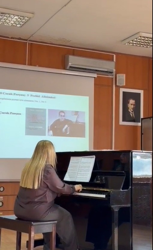 Fakültemiz Güzel Sanatlar Eğitimi Bölümü Müzik Eğitimi Anabilim Dalı tarafından, “Azerbaycanlı Bestecilerin Piyano Eserleri” başlıklı anlatımlı konser etkinliği düzenlendi. Bolu Abant İzzet Baysal Üniversitesi öğretim üyesi Doç. Dr. Mehriban Aliyeva tarafından gerçekleştirilen konserde, Azerbaycanlı bestecilere ait piyano eserleri seslendirilirken; eserlerin tarihsel ve müzikal bağlamına ilişkin açıklamalara da yer verildi. Gürer Aykal Salonu’nda gerçekleştirilen etkinlik, öğrenciler ve dinleyiciler tarafından ilgiyle takip edildi. Etkinliğin, Güzel Sanatlar Eğitimi Bölümü tarafından sanatsal ve akademik nitelikli benzer çalışmalarla sürdürülmesinin planlandığı ifade edildi.