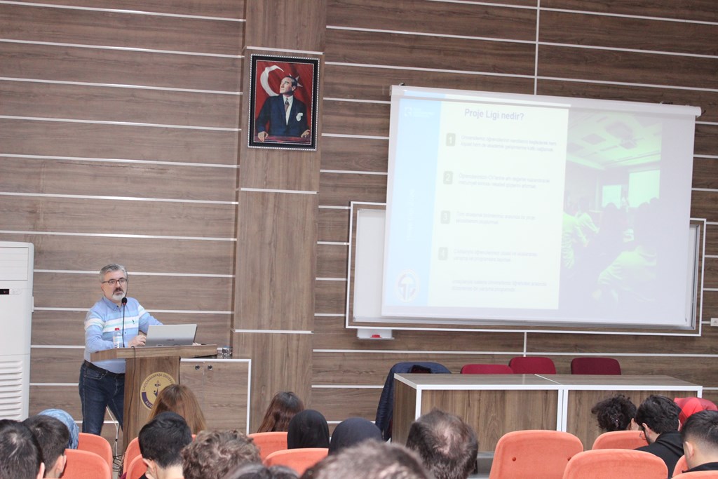 Fakültemiz öğrencilerine yönelik olarak düzenlenen “Proje Ligi 26” Tanıtım Programı başarıyla gerçekleştirildi. Program kapsamında, Proje Modülü Uzmanı Öğr. Gör. Dr. Fatih Yaşar tarafından katılımcılara Proje Ligi 26 süreci, başvuru aşamaları, değerlendirme kriterleri ve programın öğrencilere sağlayacağı akademik ile mesleki kazanımlar hakkında kapsamlı bilgiler sunuldu. Öğrencilerimizin proje kültürünü geliştirmeyi; araştırma, yenilikçi fikir üretme ve uygulama süreçlerine aktif katılımlarını teşvik etmeyi amaçlayan program yoğun ilgi gördü. Tanıtım etkinliği, katılımcıların sorularının yanıtlandığı interaktif bir soru-cevap bölümüyle tamamlandı. Eğitim Fakültesi olarak, öğrencilerimizin proje tabanlı çalışmalara katılımını destekleyen ve akademik gelişimlerini güçlendiren bu tür organizasyonların artarak devam etmesi hedeflenmektedir. Programın düzenlenmesinde emeği geçen tüm paydaşlara ve etkinliğe katılım sağlayan akademisyenlerimiz ile öğrencilerimize teşekkür ederiz.