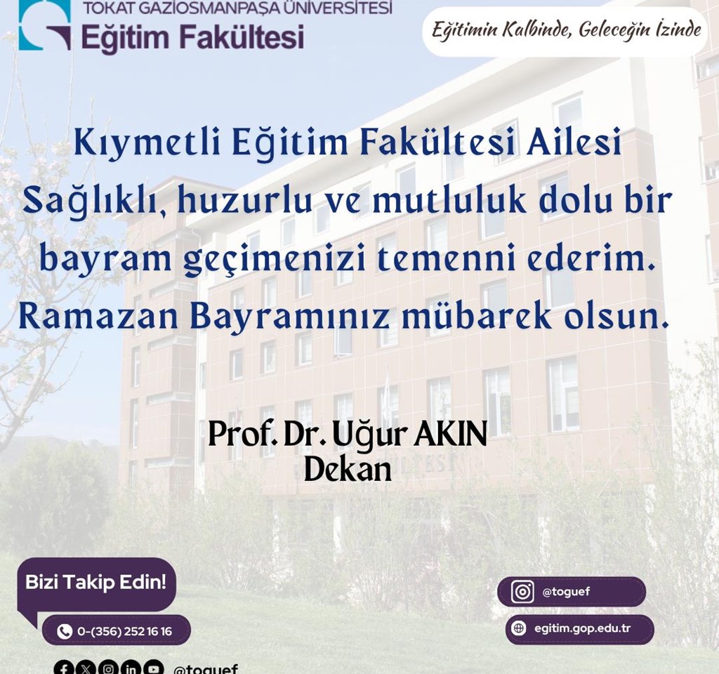 Dekanımız Prof. Dr. Uğur AKIN’ın Ramazan Bayramı Tebrik Mesajı