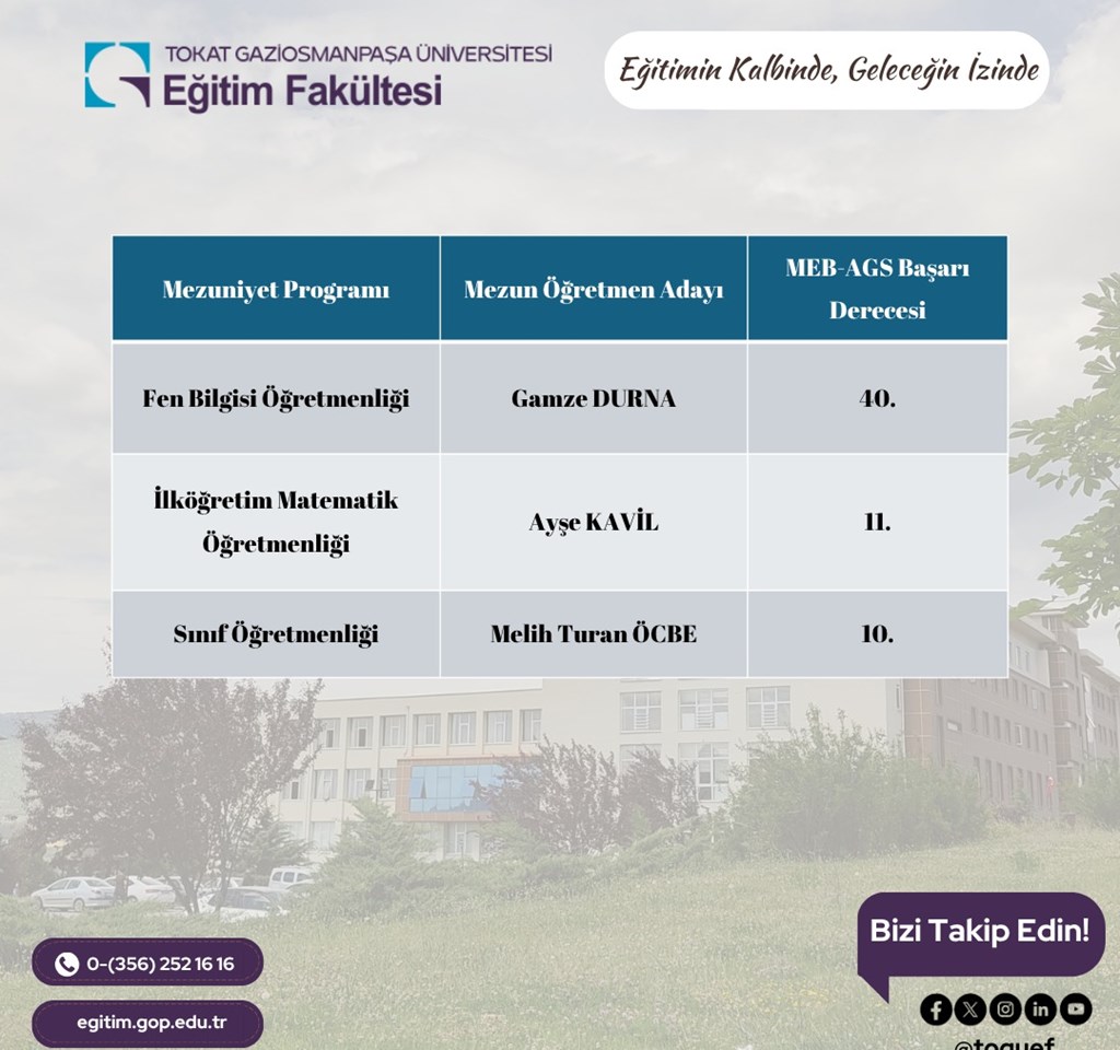 Geleceğin öğretmenleri olarak çıktığınız bu yolda başarılarınızın artarak devam etmesini diliyoruz.