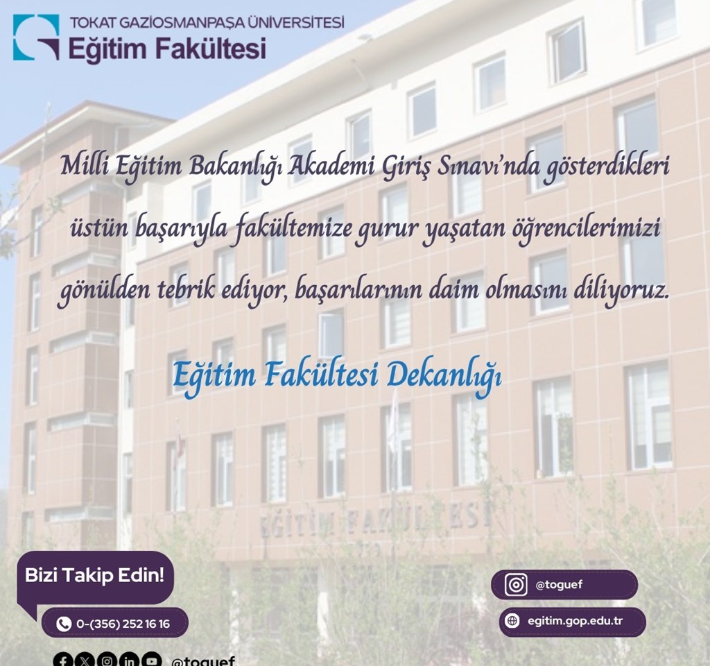 Millî Eğitim Bakanlığı Akademi Giriş Sınavı’nda (AGS) üstün başarı elde eden öğrencilerimizi tebrik ediyoruz.